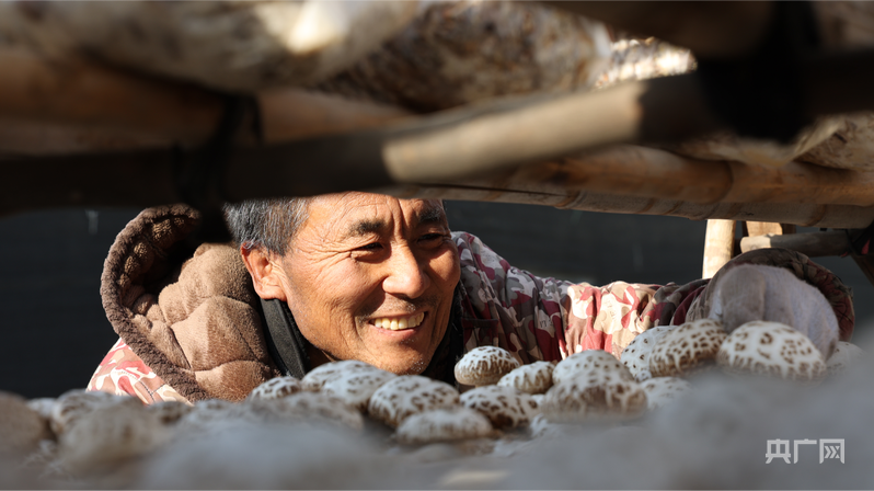 菇农正仔细观察花菇的生长状态(央广网记者 王勇生 摄)