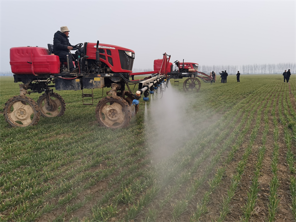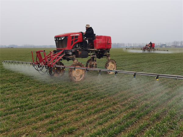 12月16日,驿城区水屯镇农民利用大型机械正在喷洒农药(张玉霞 摄)