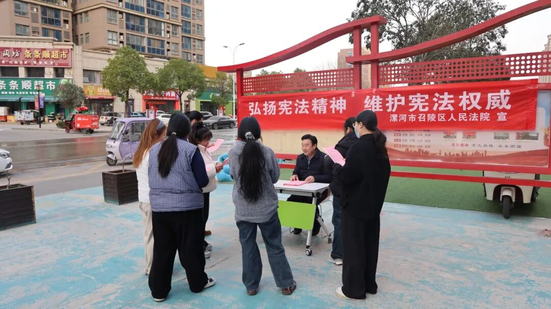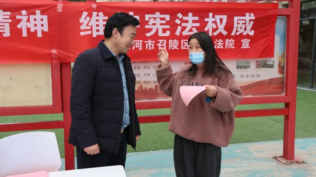 为切实推动宪法精神走进基层、浸润民心,在第十二个宪法宣传日来临之际,12月1日下午,漯河市召陵区人民法院组织退休法官郭庆祥、民事审判庭干警走进汾河路社区开展宪法宣传进社区主题活动,以“老带新”的普法阵容、“接地气”的宣传方式、“心贴心”的服务态度,将法治温暖送到群众家门口,为冬日社区注入浓厚法治暖流,书写司法为民、普法惠民的生动答卷。
