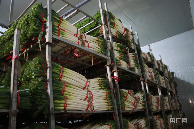 新鲜大葱处理后存入保鲜冷库(央广网发 王凯 摄)