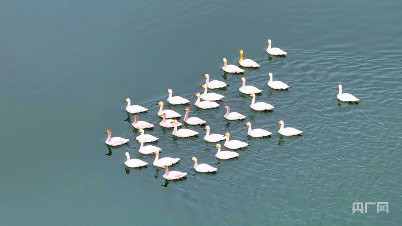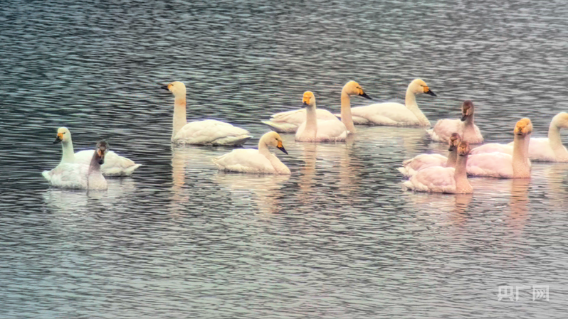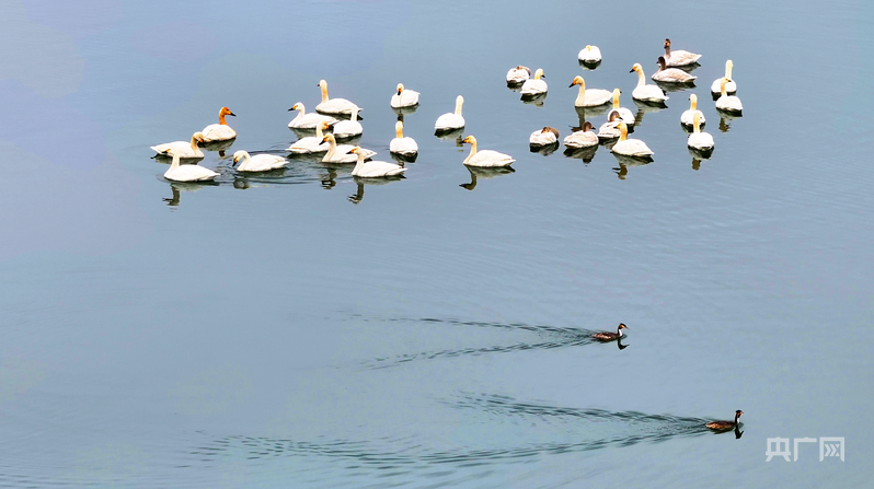 天鹅在水面悠然游动(央广网发 刘剑飞 摄)