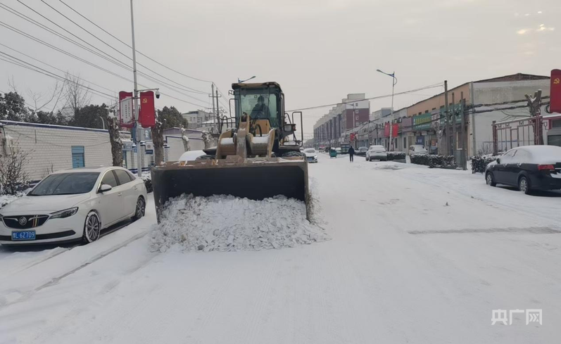 环卫部门组织人员、机械对道路积雪进行错峰清扫,保障城市道路交通畅通(央广网发 王金杰 摄)