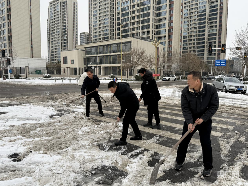 机关单位人员清理道路积雪(央广网发 王金杰 摄)